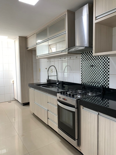 COZINHA COM ESPAÇO AMPLO E BEM VENTILADO, ALÉM DE ÁREA DE SERVIÇO TOTALMENTE INDIVIDUALIZADA;