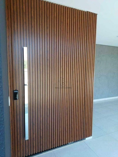 Porta de entrada com fechadura digital , unindo segurança e modernidade;