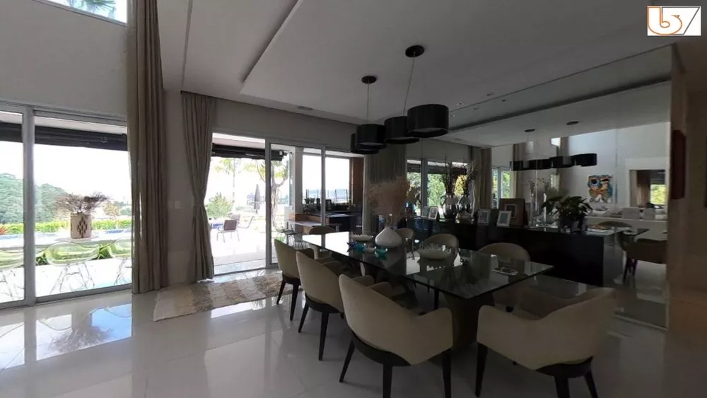 Com 4 dormitórios, sendo 4 suítes, possui 9 banheiros, 6 vagas de garagem, encontra-se mobiliado, localizado em condomínio.