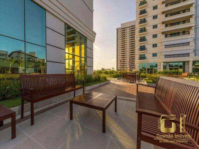 O apartamento fica na Torre Coral e possui 79m², distribuído em 03 quartos, sendo 1 suíte, sala para 2 ambientes, área de serviço, cozinha, varanda com espaço gourmet, WC social e 2 vagas de garagem.